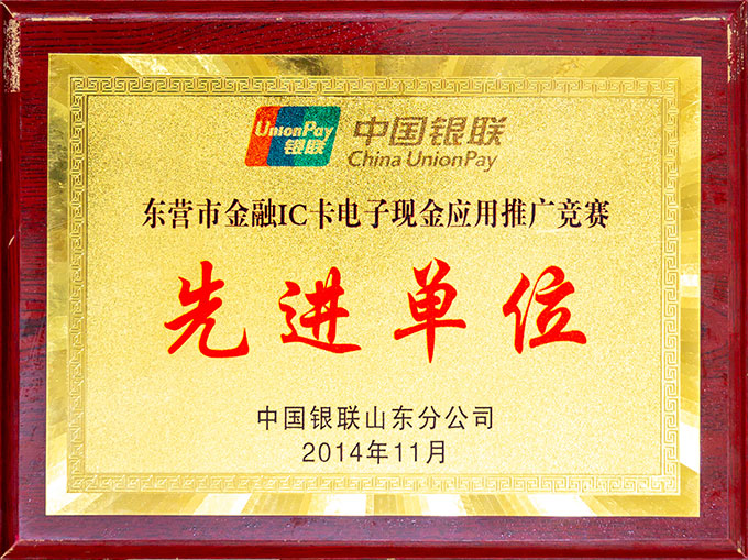東營市金融IC卡電子現金應用推廣競賽先進單位