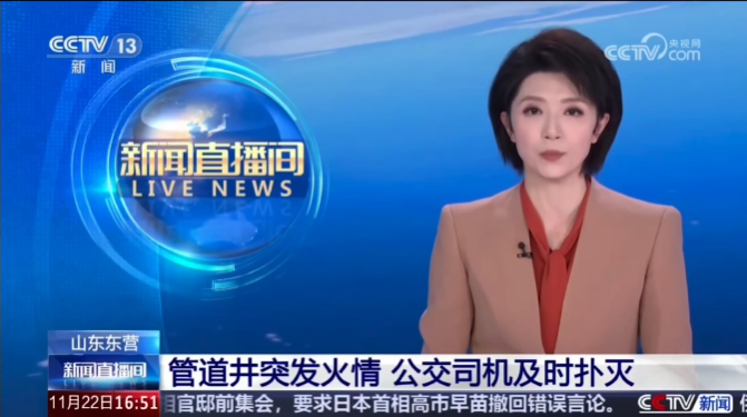 中央電視臺 | 路遇管道井突發火情,東營公交司機撲滅化險情