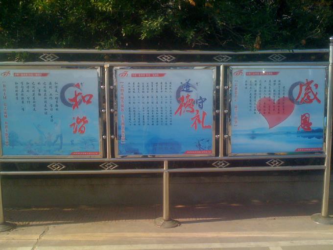 8月24日下午,市公交公司汽車三隊經過多日熟思審處,精心構思后制作的六幅展板安置在辦公樓前東側的不銹鋼宣傳櫥窗內。