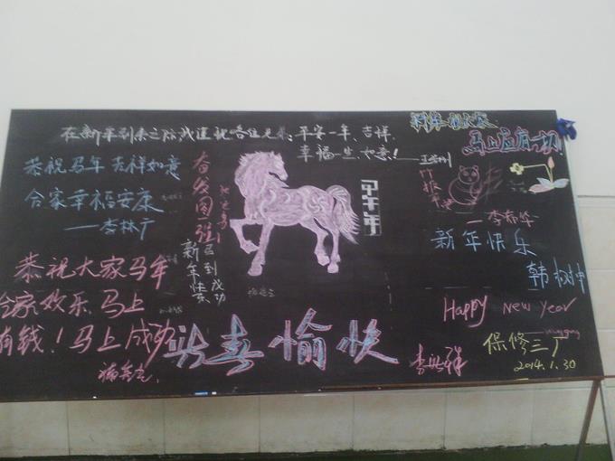草長鶯飛二月天,拂堤楊柳醉春煙。市公交公司各單位都以不同的形式寄托希望,祝賀新的一年,其中馬年畫馬是一突出的亮點。有的表現(xiàn)為端莊、祥怡;有的疾馳如飛,勢不可擋;有的奮蹄向上、斗志激昂。不同的馬兒表現(xiàn)對公交事業(yè)良好的祝愿,也充分體現(xiàn)公交濃厚的企業(yè)文化氛圍。市公交公司保修三廠在以馬寓意的同時,邀請職工書寫新年祝語,這不僅抒發(fā)了大家的美好祝愿,還增添了文化氣息,更增加了大家的向心力、凝聚力、戰(zhàn)斗力。