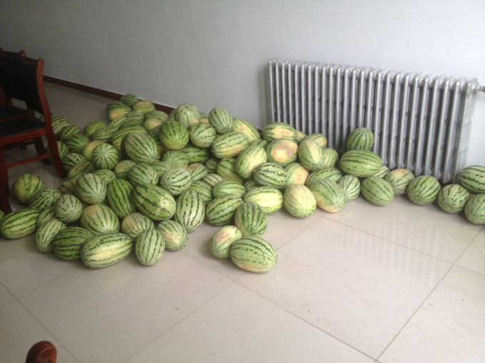 “大熱天的,大家很辛苦,給工友們買些西瓜吃,車隊也是我的家!”楊海衛一邊從三輪車上搬運著西瓜,一邊說笑著。