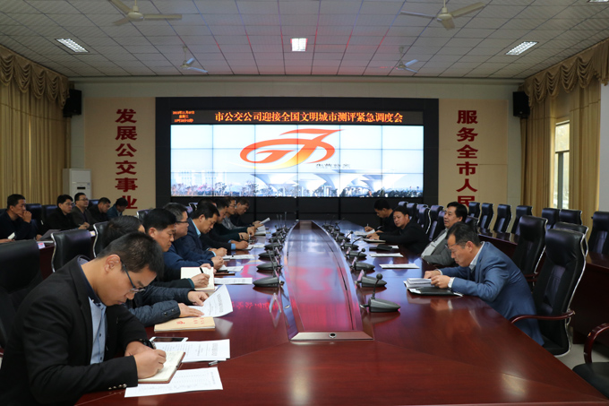 2018年11月7日下午15時30分,市公交公司在辦公樓一樓會議室組織召開了全國文明城市迎檢測評緊急調度會。公司黨委書記、經理朱新民主持會議并作重要講話,公司黨委成員及各部門、單位主要負責人參加會議。