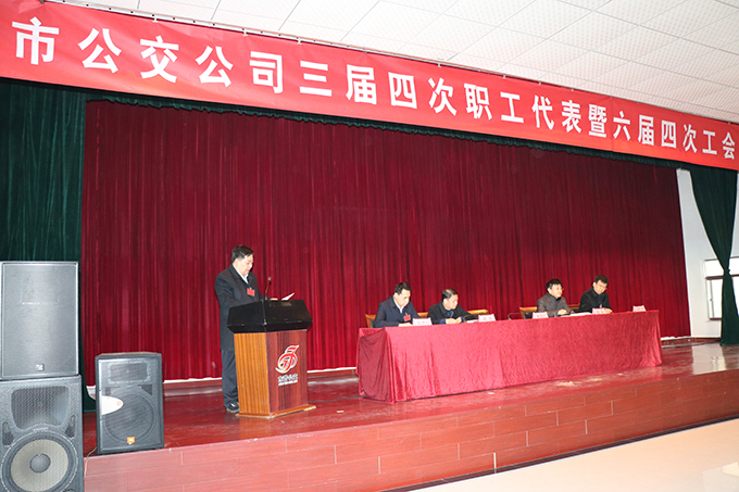 2月16日上午,東營市公交公司三屆四次職工代表暨六屆四次工會(huì)會(huì)員代表大會(huì)在公司南大會(huì)議室隆重召開。會(huì)議由公司副經(jīng)理趙龍主持,公司黨委書記、經(jīng)理朱新民,黨委副書記劉海,副經(jīng)理孫紅光,副經(jīng)理景洪培出席了本次會(huì)議,本次大會(huì)共有正式代表94人,實(shí)到92人,請(qǐng)假2人,列席代表9人。