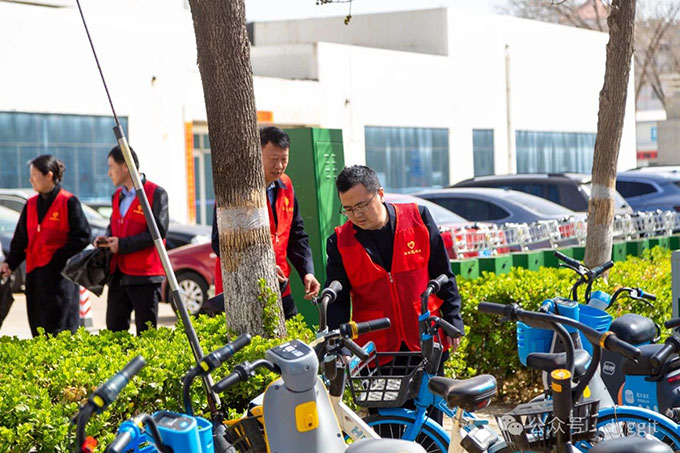 大家身穿志愿紅背心迅速集合完畢,自覺帶上長柄夾、垃圾袋等工具分班分組開始沿路勞動,志愿者們分工合作,齊心協力,干得熱火朝天,對路面及兩側綠化帶等重點區域的垃圾、煙頭進行了認真清理。對路邊停放雜亂的共享單車進行了擺放歸置,