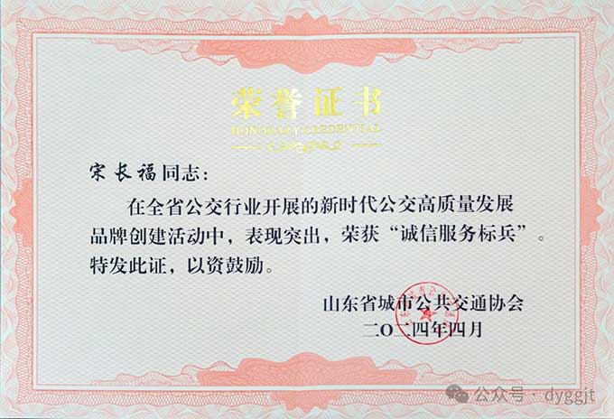 日前,從剛剛閉幕的山東省城市公共交通行業(yè)協(xié)會第七屆三次代表大會暨2023年會上傳來喜訊,市公交集團(tuán)喜獲“2023年度全省公交行業(yè)高質(zhì)量發(fā)展品牌創(chuàng)建行動先進(jìn)企業(yè)”榮譽(yù)稱號,9路線路組榮獲“品質(zhì)公交線路”,3名同志被評為“誠信服務(wù)標(biāo)兵”。