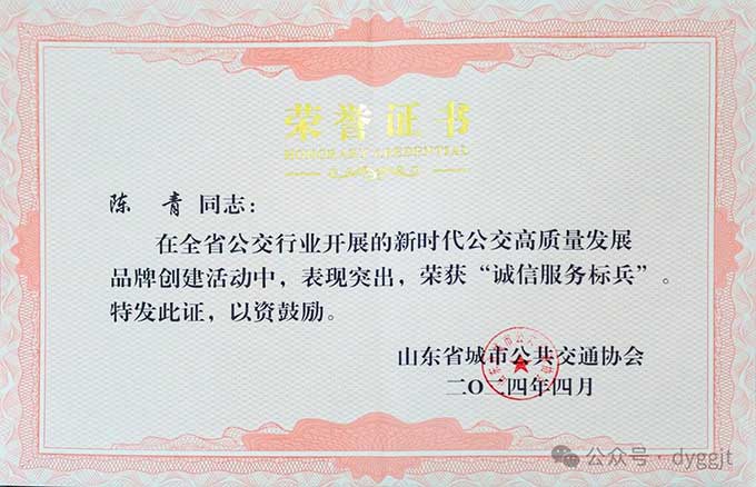 陳青同志于2020年榮獲東營(yíng)市“五一勞動(dòng)獎(jiǎng)?wù)隆保群螳@得東營(yíng)市第一屆、第二屆城市公交駕駛員安全節(jié)能駕駛大賽中第三名和第一名的優(yōu)異成績(jī),代表東營(yíng)市參加全省城市公交駕駛節(jié)能技能大賽,并取得了優(yōu)異成績(jī)。