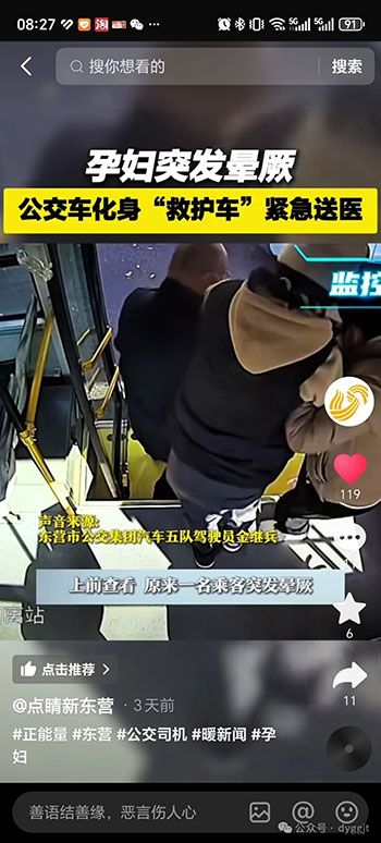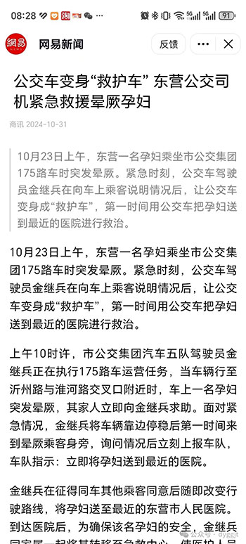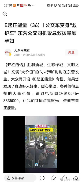市公交集團(tuán)汽車五隊(duì)駕駛員金繼兵救助孕婦事跡被媒體廣泛報道,引發(fā)數(shù)十萬網(wǎng)友瀏覽,并紛紛留言點(diǎn)贊。