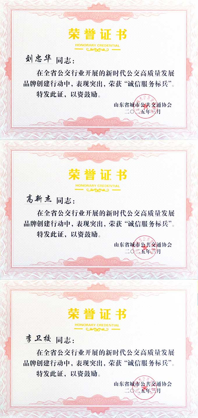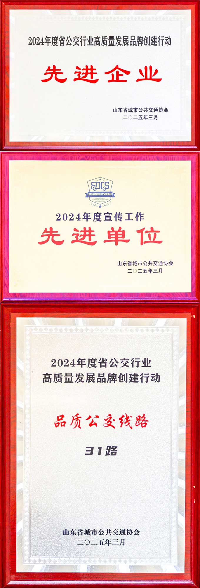 會上,東營市公交集團獲得2024年度全省公交行業宣傳工作先進單位、全省公交行業高質量發展品牌創建行動先進企業等榮譽稱號,汽車三隊31路公交線路被評為2024年度全省公交行業高質量發展品牌創建行動“品質公交線路”稱號,李衛校、高新杰、劉忠華等3名同志被評為全省公交行業高質量發展品牌創建行動“誠信服務標兵”。