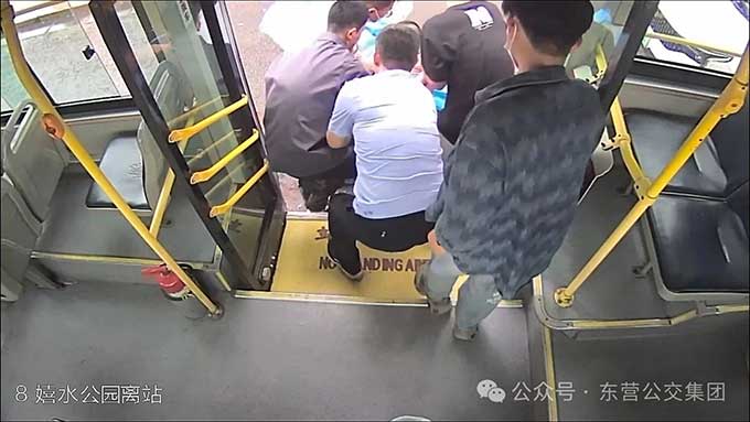 6月2日晚高峰,東營街頭車水馬龍。17時35分,8路公交駛離東趙大廈站,司機高希明從后視鏡發覺有些異常:一名剛換座的乘客低垂著頭,臉上也不正常,緊接著身體緩緩滑落在車廂地板上。