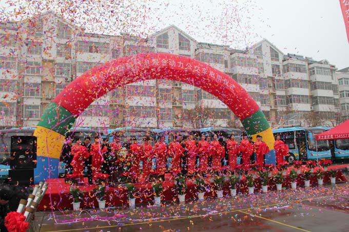 3月16日上午,市公交公司氣電混合動力公交車啟用儀式在市公交公司舉行。儀式由市交通運輸局副局長燕渭澤主持,副市長閆樹信,市政府副秘書長李宗洲,市交通運輸局局長李兆君,市城市管理局局長常淮誠,市交警支隊支隊長王春亭、副支隊長劉衛忠,市財政局調研員崔希堯,市環保局副局長張振浩,市經濟和信息化委副主任李建民,市運管處處長李???,中通客車控股股份有限公司副總經理王興福等領導參加了啟用儀式。