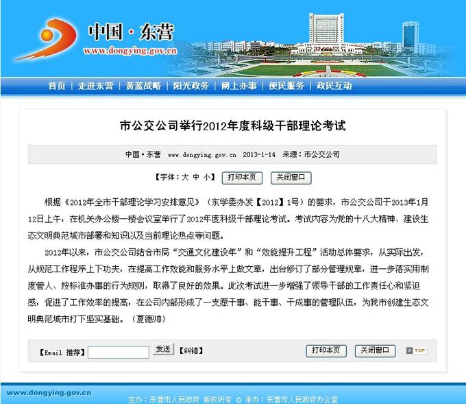 2013年1月14日東營市政府網(wǎng)站報道