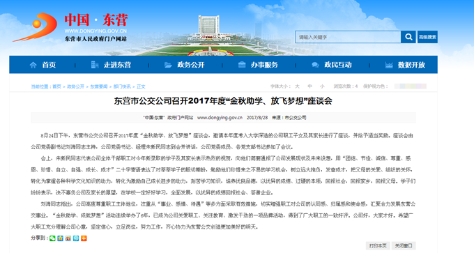 2017年8月28日東營市政府網站報道